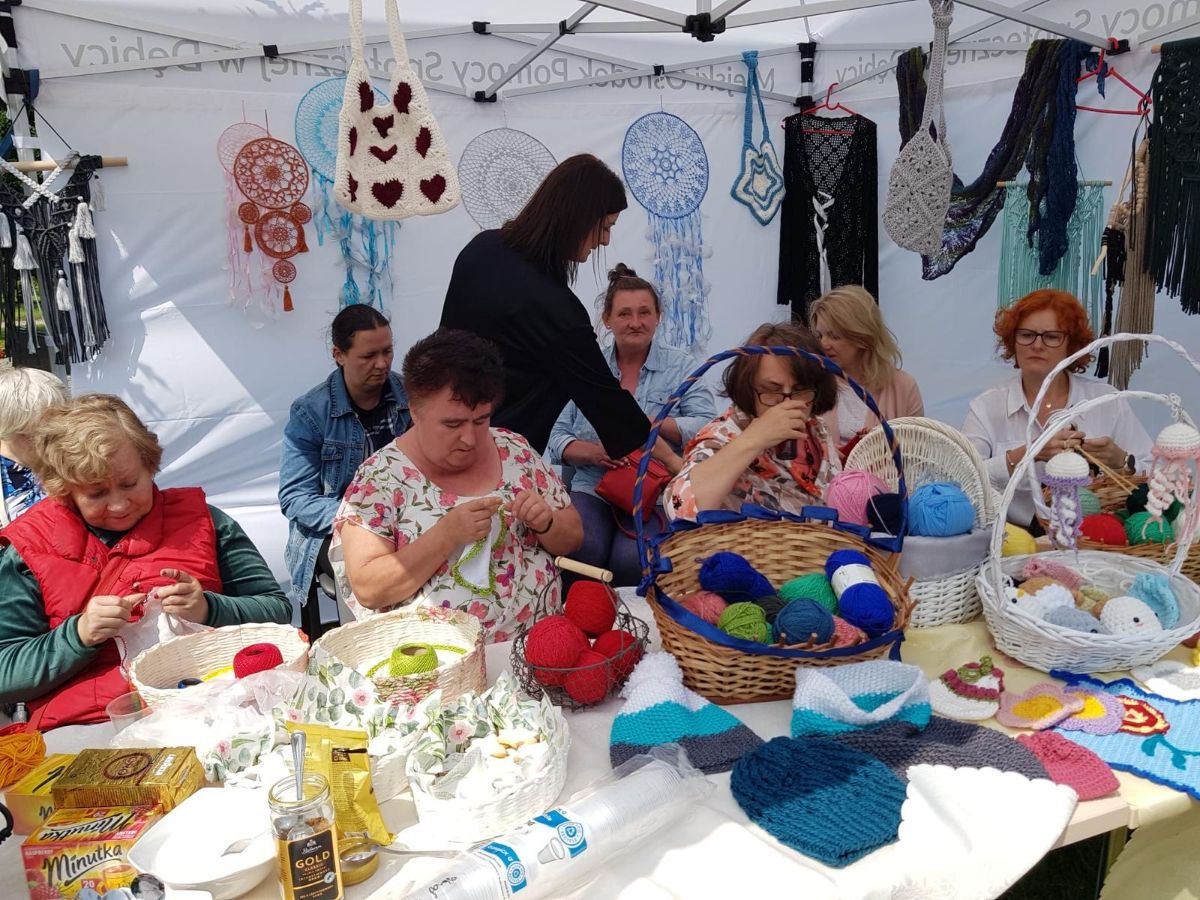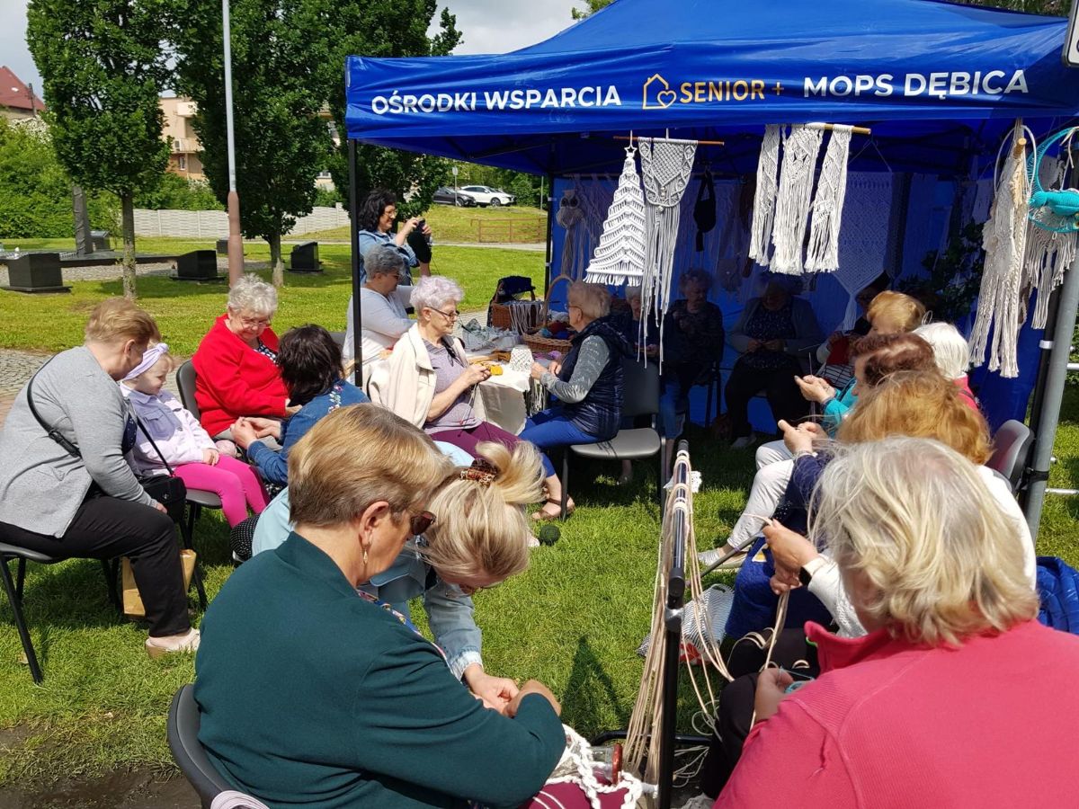 Pogoda dopisała, humory również i pod dębickim niebem powstawały piękne prace z włóczki, muliny, sznurka i kordonków. W ruch poszły druty, szydełka i krosna. A ci, którzy chcieli, mogli nauczyć się podstawowych splotów i ściegów.