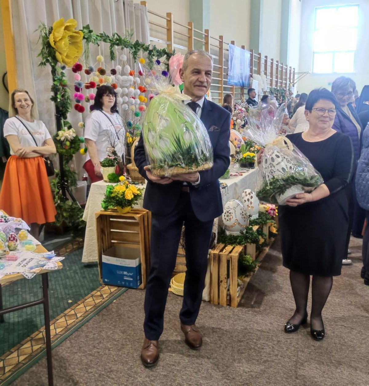 Natomiast ośrodki wsparcia Senior+ otrzymały nagrodę za zajęcie I-go miejsce w kategorii „Współczesne ozdoby wielkanocne”. Dyplom odebrała kierownik ośrodków oraz terapeuci, którzy wraz z seniorami, w przygotowanie pięknego stołu i dekoracji włożyli mnóstwo pracy, a ich dzieła były połączeniem tradycji i nowoczesności. Nie zabrakło pająków wielkanocnych, podświetlanych jaj, zdobnych pisanek oraz piernikowych dekoracji, które przyciągały przybyłych na kiermasz mieszkańców.