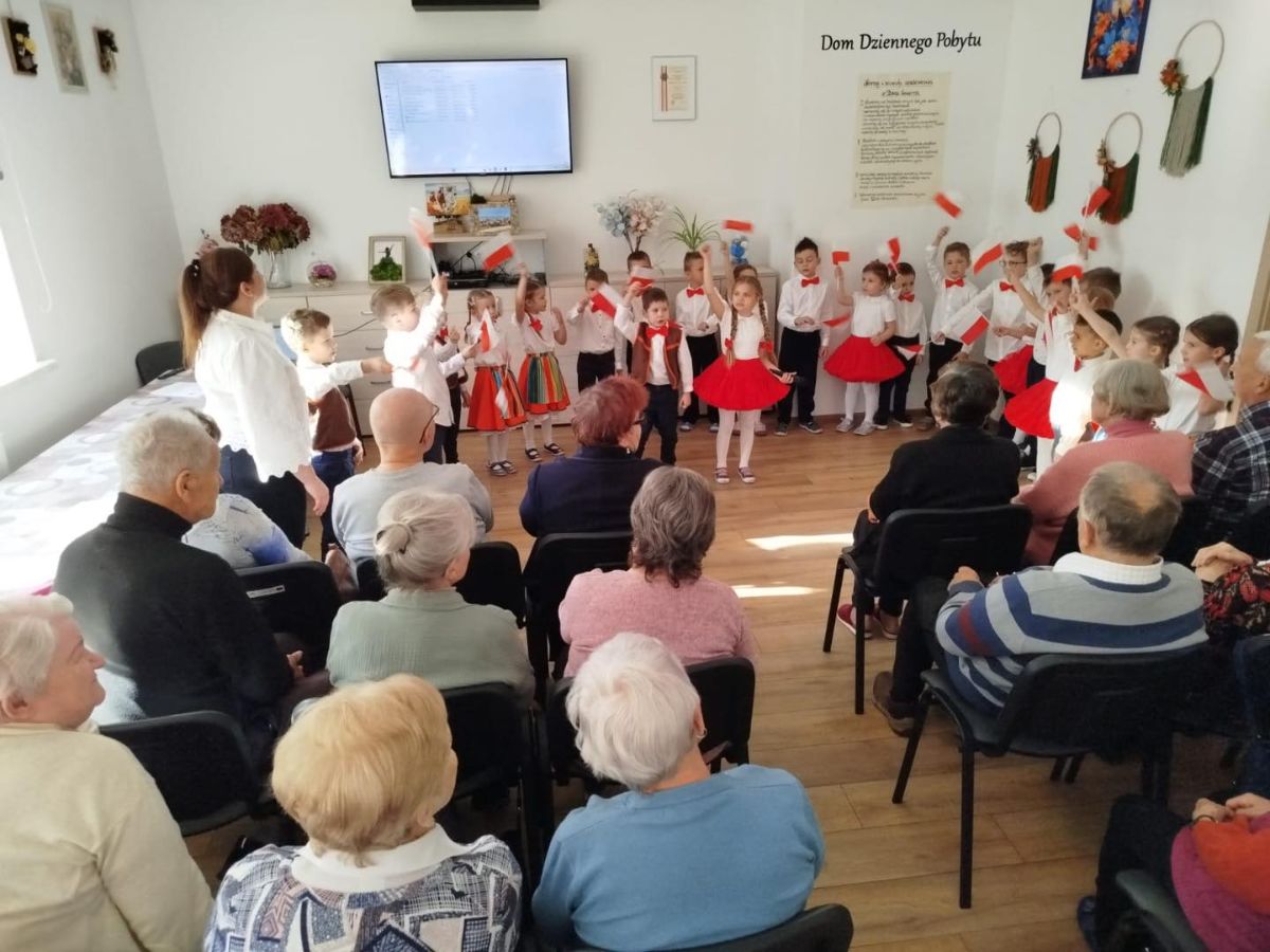 Gośćmi szczególnymi były przedszkolaki, które odwiedziły seniorów, złożyły życzenia i zaprezentowały patriotyczny występ przygotowany na Narodowe Święto Niepodległości. Wszyscy wspólnie odśpiewali hymn oraz pieśni patriotyczne, pielęgnując pamięć i tradycję. Były to chwile pełne wzruszeń i dumy.