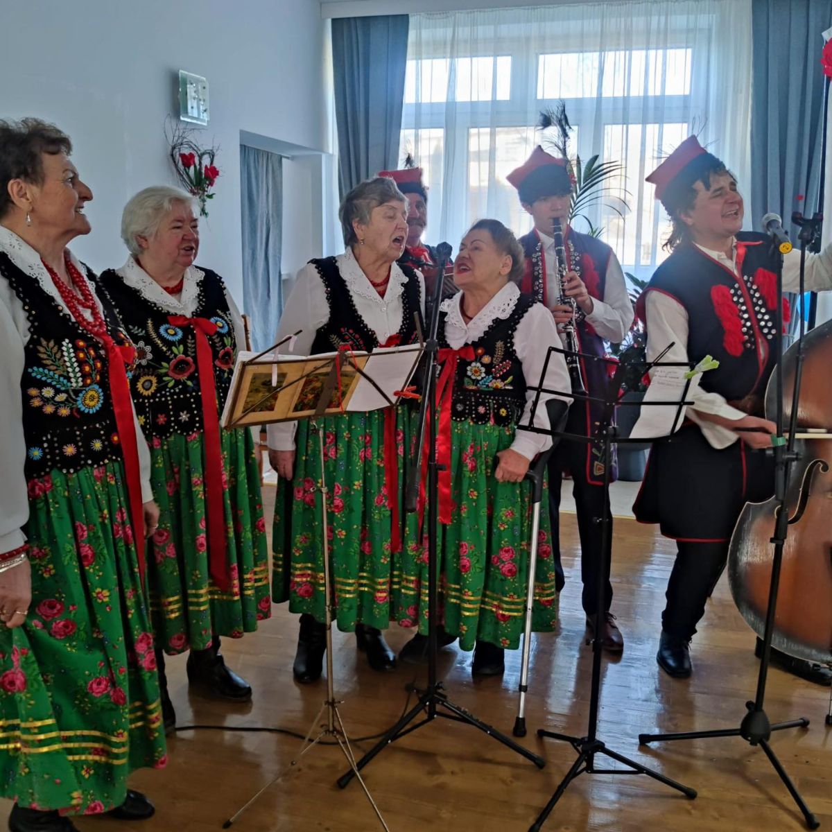 Spotkanie rozpoczęło się od przedstawienia części artystycznej, w której wzięli udział uczestnicy zajęć w ośrodkach wsparcia. Wiersze recytowały panie: Barbara, Kazimiera i Elżbieta oraz pan Stefan, a panowie: Jerzy, Stanisław, Józef i Zygmunt zaprezentowali taniec z sercami, który wprowadził zebranych w nastrój walentynkowy. Między stołami krążyła skrzynia z „Pocztą Walentynkową”, z której każdy uczestnik spotkania mógł wylosować serdeczną walentynkę. Zawarte w nich sentencje wzbudziły dużo radości i uśmiechów. A ponieważ mamy karnawał, nie mogło zabraknąć masek, które Seniorzy własnoręcznie zrobili podczas zajęć manualnych. Tegoroczne spotkanie obfitowało w gości. Jako pierwsi zjawili się członkowie Zespołu Ludowego „Morsy”, którzy porwali zebranych do tańca w rytm ludowych melodii i piosenek. Do wspólnej zabawy włączyła się pani Marzena Socha dyrektor MOPS oraz jej zastępca pani Anna Sozańska, a także kolejni zacni goście: pani Małgorzata Rauch zastępca burmistrza miasta i pan Przemysław Wojtys dyrektor Zakładu Opieki Zdrowotnej w Dębicy. Wszyscy z wypiekami na twarzy tańczyli i śpiewali. Było z przytupem na wesoło i radośnie.