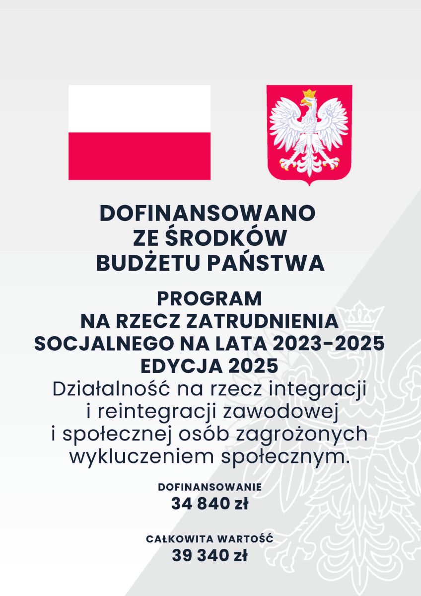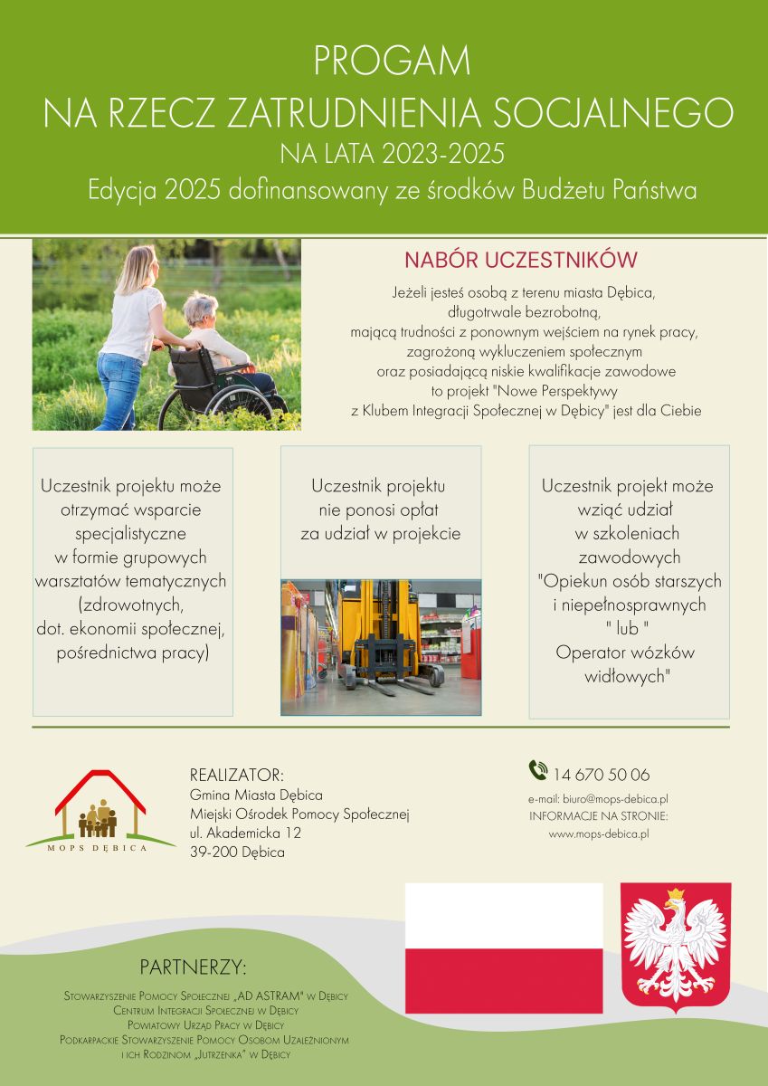 Warsztat zdrowotny został zorganizowany w ramach projektu „ Nowe perspektywy z Klubem Integracji Społecznej w Dębicy” który jest realizowany w ramach Programu na rzecz zatrudnienia socjalnego 2023-2025. Edycja 2025 ogłoszonego przez Ministra Rodziny, Pracy i Polityki Społecznej, dofinansowany ze środków budżetu państwa.