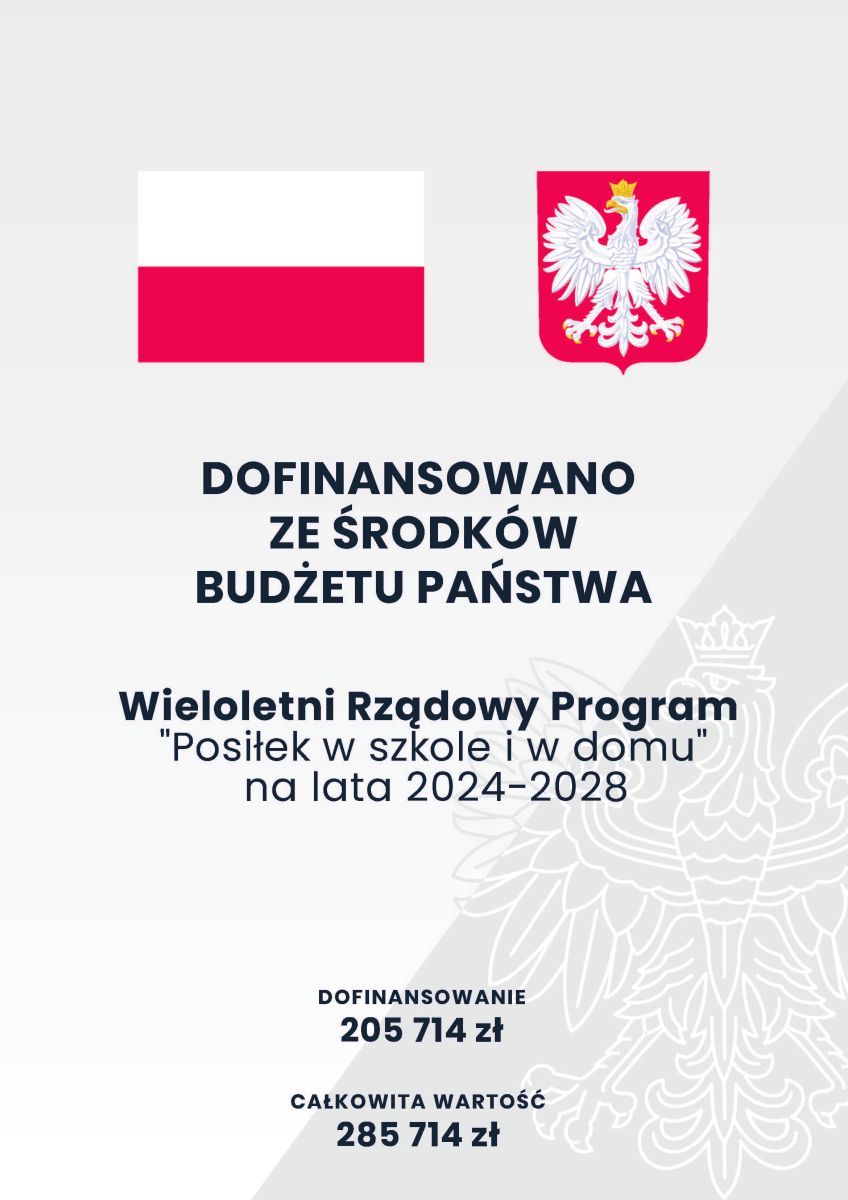 Gmina Miasto Dębica zawarła ze Skarbem Państwa - Wojewodą Podkarpackim umowę w zakresie realizacji wieloletniego rządowego programu „Posiłek w szkole i w domu” na lata 2024-2028. Wojewoda Podkarpacki przyznał środki finansowe w formie dotacji celowej w wysokości 205 714 zł.